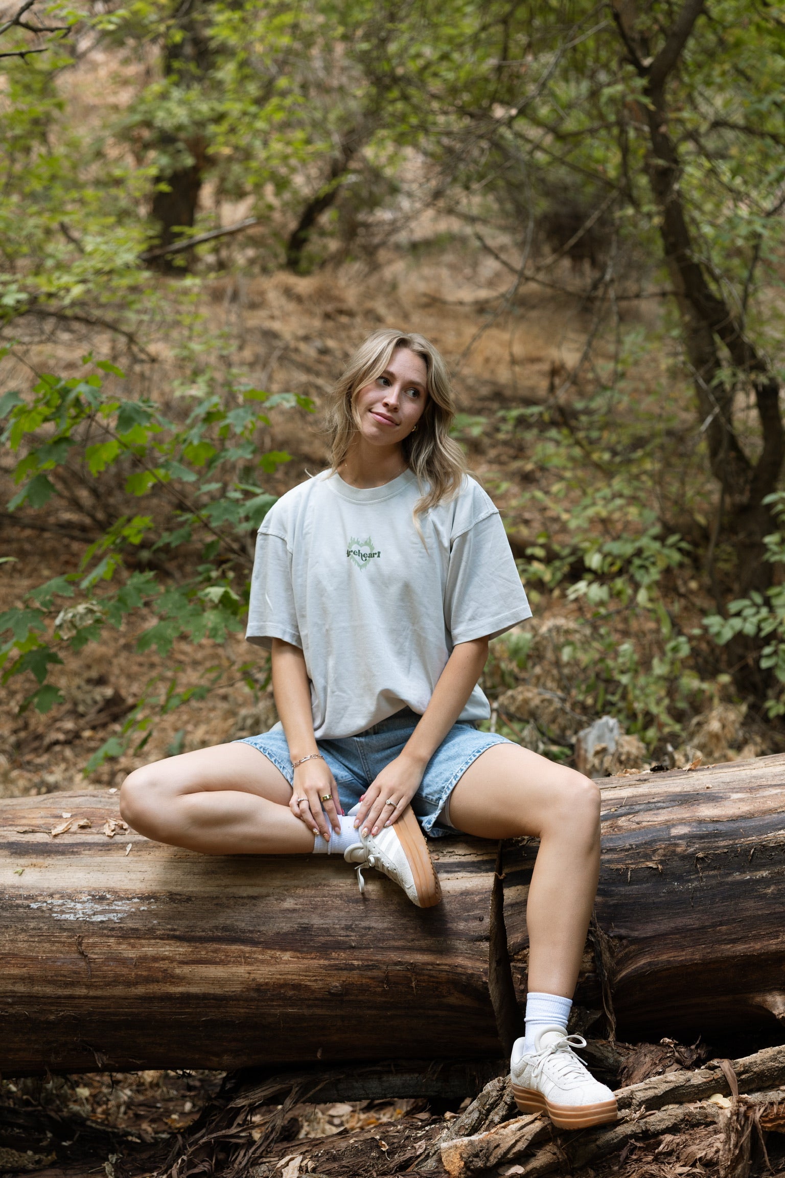 100% cotton knit with a pigment dye. This tee will get softer and softer wear after wear.